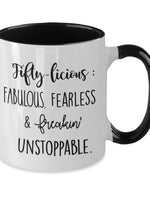 - Fifty-licious 50th birthday gifts for women ideas 50th birthday coffee mug 50 years old