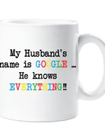 Novelty Mug Gift My Husband's Name is Google He Knows Everything Gift For Her Funny Present Birthday Anniversary