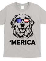 Celebrate Independence Day with our Golden Retriever 4th Of July Merica {product}. This fun design is perfect for dog lovers who want to showcase their patriotic spirit while enjoying summer festivities. Ideal for BBQs, fireworks, or just a day at the park with your furry friend, this {product} is a must-have for any proud pet owner. Show off your love for America and your canine companion simultaneously!