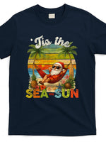 - Tis The Sea-Sun Funny Christmas In July Hawaii Santa Beach T-Shirt