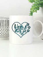 Home Is Where My Dog Is with star font printed on the front of this White Ceramic Coffee Mug.