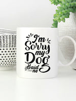 I_m Sorry My Dog Said No printed on the front of this White Ceramic Coffee Mug.