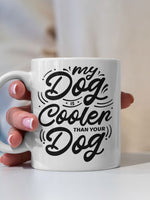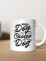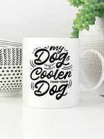 My Dog Is Cooler Than Your DOg printed on the front of this White Ceramic Coffee Mug.