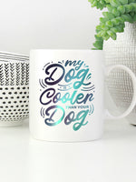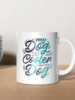 My Dog Is Cooler Than Your DOg with Green Galaxy font printed on the front of this White Ceramic Coffee Mug.