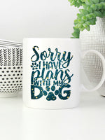 Sorry I have Plants With My Dog with star font printed on the front of this White Ceramic Coffee Mug.