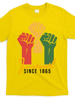 Celebrate freedom and heritage with our 'Juneteenth Since 1865' {product}. This powerful message embodies the spirit of resilience and unity. Perfect for commemorating significant historical events and fostering community pride, it is an essential addition to your wardrobe. Wear it during Juneteenth celebrations or casual gatherings to honor the past and inspire future generations.