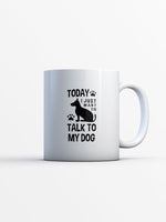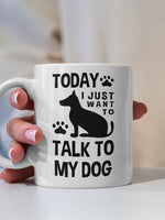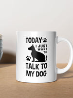 Today I Just Want To Talk To My Dog printed on the front of this White Ceramic Coffee Mug.